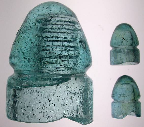 Awsome 133.4 full of seed bubbles and great underpours with two almost identical mini me's that I got at the Springfield show a few years ago. The mini's were made by the Wilkersons out of real melted insulator glass and are some of my favorite pieces. |