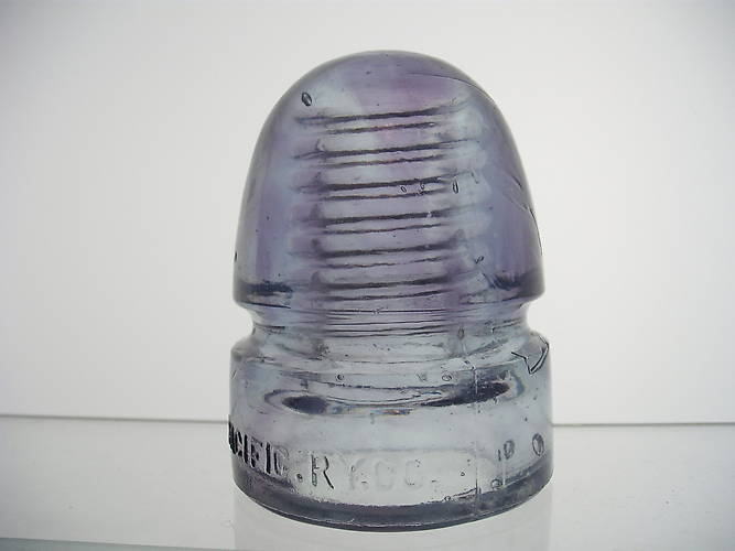 This CD 143 is embossed: CANADIAN PACIFIC. RY. CO. and is EIN [170]. It is a pale gray shade with wonderful purple bands across the dome. The purple bands are almost entirely on the portion above the wire groove. Very nice seperation of colors in this one. Picked up at CFIC swap yesterday. |