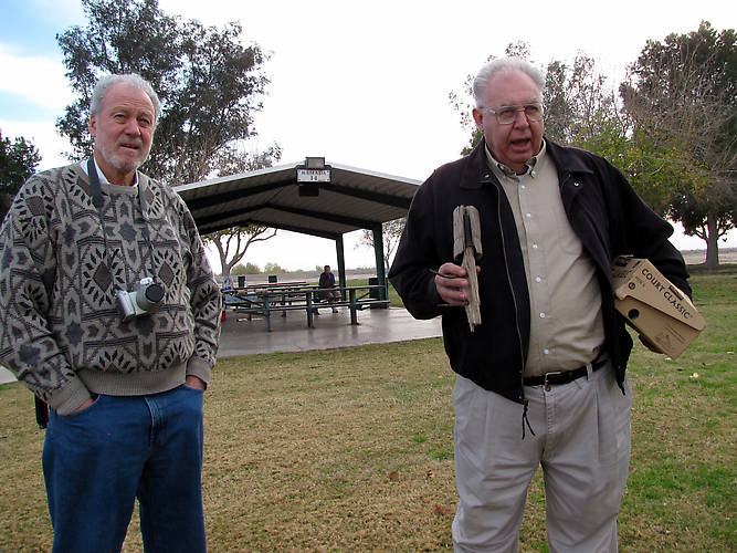 Jerald Mclall looks on as Lou Hall tells the story behind his amazing find of a Goodyear insulator, wood cover, pin and original cut nails that came off one of 1st telegraph lines in California. An Incredible piece of history. Thanks for bringing it Lou. |