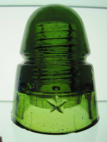 I found this star on the Railroad line in Warm Springs, Georgia. Roosevelt would vacation in Warm Springs and I think he even passed away in Warm Springs. I wonder how many times he passed by this insulator on a train? All the poles are gone in Warm Springs now. One pole by a bridge was loaded with green CD 145's and 152's. Someone cut the pole down and beat me to them! |