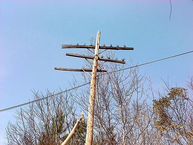 One of the few poles still standing along the track.