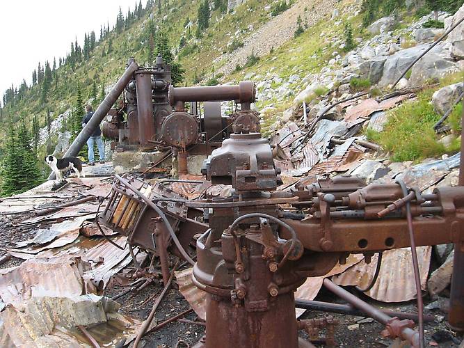 Another view of the mine workings. It's really cold and windy, and starting to snow a bit. A snowstorm is off in the distance and starting to approach us.