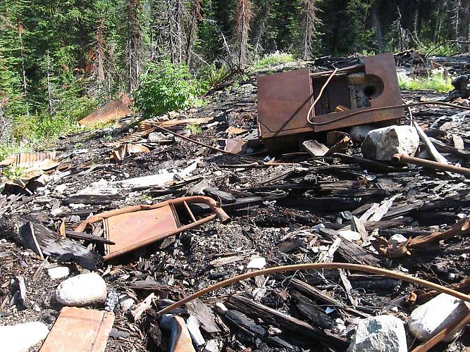 The foundations of buildings, wood stoves and bed frames is about all that survived the forest fires. But of course all the porcelain light sockets did as well, just to tease us and remind us of all the wiring there must have been everywhere.