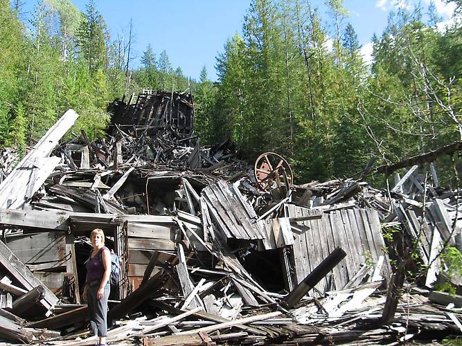 Here's Leanna at the bottom end of the concentrator building (see next historic photo).