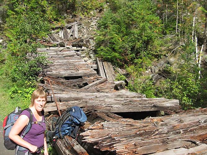 Here's the approach to the collapsed railway trestle at the river's edge. This is at the bottom of the town, which is scattered up the hillside. (see next historic photo)