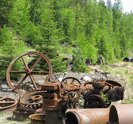 Some of the mining equipment now left there for the visitors to look at. This ghost town has become a bit of a tourist attraction nowadays. And a family lives there and runs a museum and shop. so I guess it's not really a ghost town anymore. The shop has lots of insulators, but they are all of the common type. |