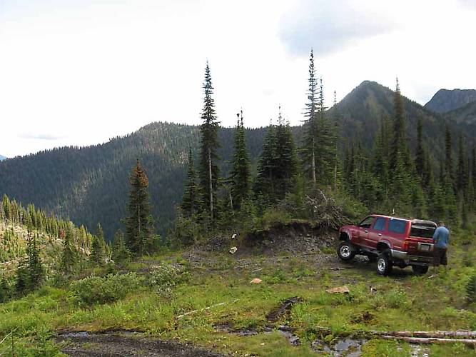This is as far as we can drive, time to start the climb up to the mountain peak. There is mine rubble everywhere around us, like narrow-gage rails, old tools, etc.