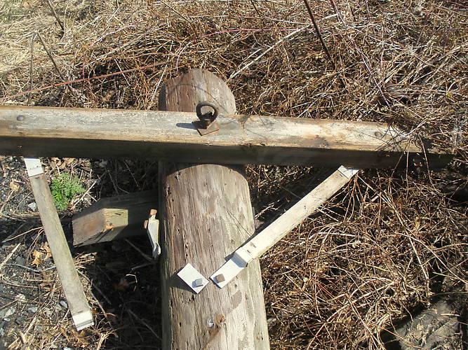 Here's the pole section that the S(OB)T was on. No matter HOW hard I tried, I could not get this insulator off the pin. It still remains on the pole.