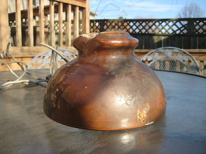 Found this really old locke unipart the other day. Forgot my camera, so i only have a picture of it after i found it. Wasn't much to look at when i found it, this is it's good side. The insulator is embossed with around 8 patent dates arranged in 4 rows, 2 dates per row. Pretty cool, there is a lot of newer JD chocolare brown things out there (wich would be nice if they werent all smashed) so this was a little misplaced among them. |