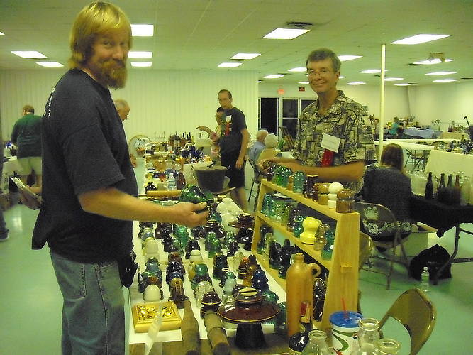 Jeff Hogan looks over the insulators offered by Paul Colburn at the Deland, Florida Bottle show on Saturday. Paul offered numerous pieces from his own collection, many of which had been in his collection since the 1970s! I did grab a few glass goodies and a few porcelains from Paul. The annual bottle show is always a fun show, though we had fewer insulator dealers this time around. Support your local insulator, and bottle shows. |