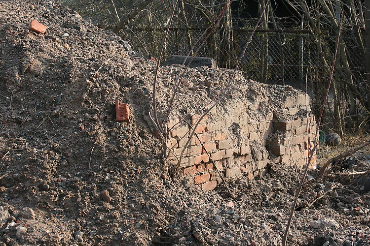 Bulldozed site of Hartford Faience. Part of the brick foundation remaining.