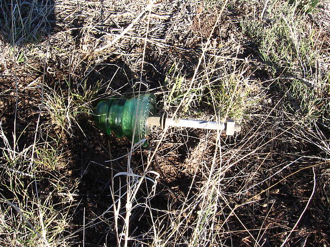 I had worked this area a few years earlier, but it was so productive I felt assured in finding more goodies. The first find of the day was this McLaughlin CD 154 in apple green. Depending on lighting conditions, they can take on a depression green color. This color has only showed up in one 1/2 mile segment of the line, so I was both surprised and glad to have come across another one. |