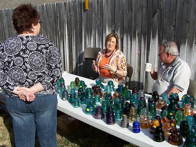 Jack Roach, Carolyn Berry, and Darleah Fine around Jack's table.