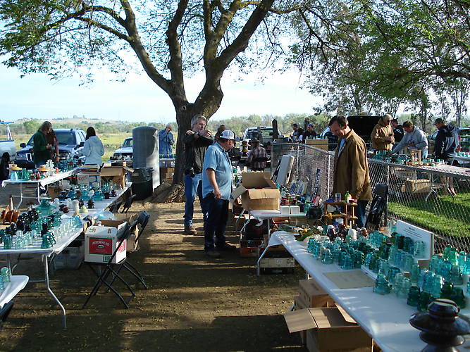 The roosters were still crowing when I took this picture. Bill Rohde is in the center, admiring the contents of Dale Huber's sales table. Kevin Jacobson (who drove all the way from Arizona) is standing behind Bill.