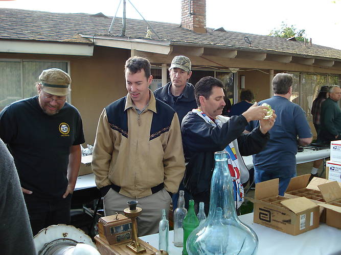 Bill Ostrander, Nathan Lamkey, and Ben Kirsten admire some old hardware, while Dwayne Anthony examines a citrine McLaughlin (one of many stunning McLaughlins that appeared at this show)