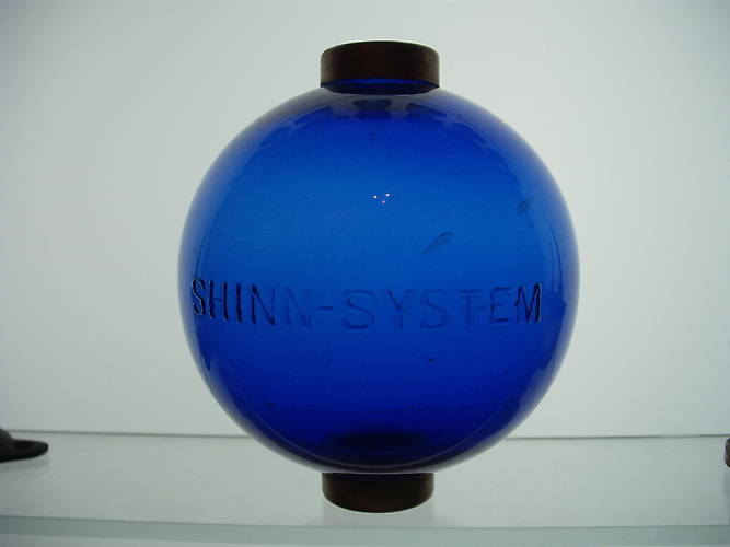 This wonderful cobalt blue LRB is embossed, as shown: SHINN SYSTEM. These were offered by the W.C. Shinn Manufacturing Company out of Lincoln, NE. They were located in Chicago earlier, and this may be from the Chicago era. Not a fancy pattern of LRB, but the embossing and color make it a gem. |