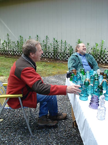 Howard & Tim share a laugh as Howard reaches for a mouse. Dale's prized lilies are growing in the background.