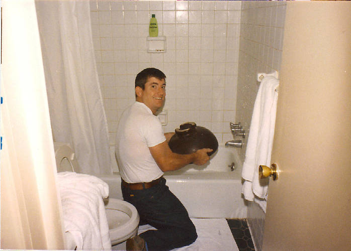 "The Tick in the Tub" Here I am cleaning one of my new treasures in the motel room tub.