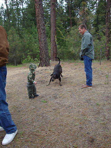 Unaware of the seriousness of the moment, Dan Simmons plays directly into the predatory jaws of the waiting Leopard Hound. Remembrances can be sent to the American Leopard Hound Council. P.S. Dog for sale.