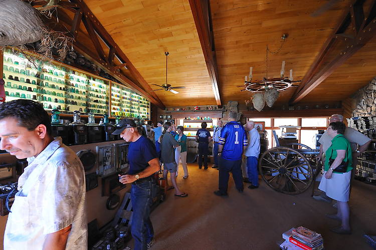 After the electromechanical tour was the tour of the insulator collection. Just look at all that threadless up there and out of people's reach. At the far end is a fine display of coloured signals and Jumbo's. The lightbox Dan is looking at also contains some Jumbo's. |