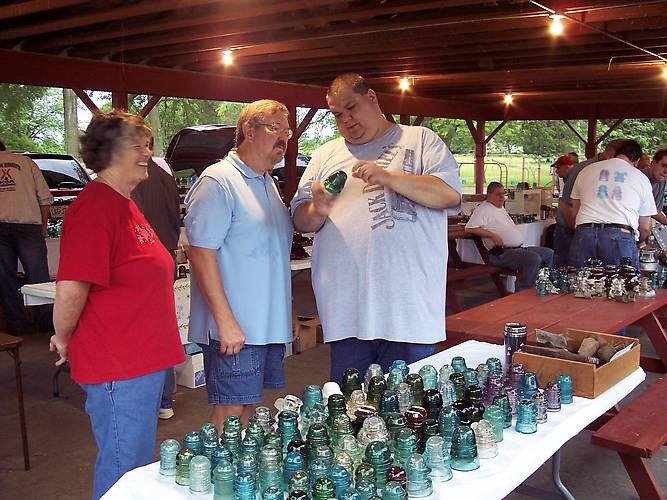 Jeanne Weber, Dennis Weber and Boone Jeffers of St. Joe, MO looking items on Tom Murphy's sales table.