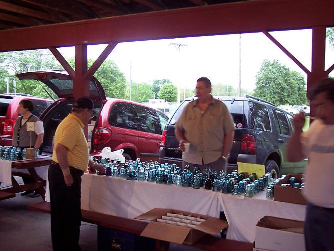 Longtime collectors Jack Bateman at Ed Peters sales tables.