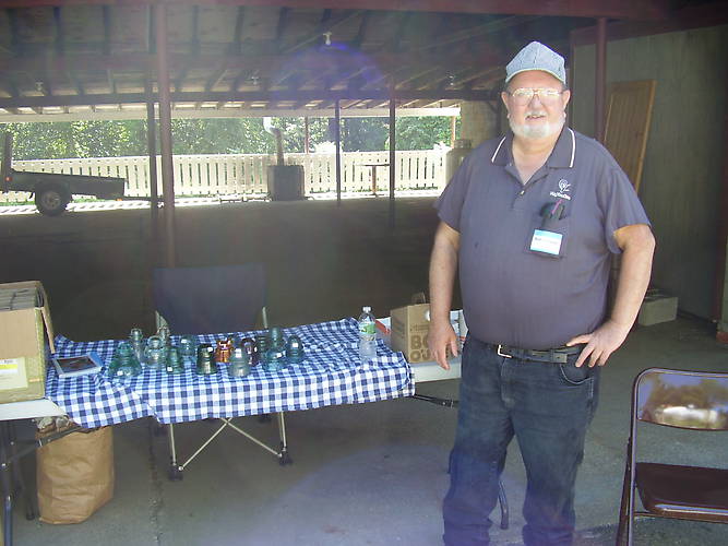 Dennis O'Connell came down from New Hampshire today and always has a nice selection of glass. I did several trades today and got a beautiful smoky green/gray CD 166.2 pennycuick from Dennis that he said was one of his first insulators when he first began collecting around 15 years ago. |