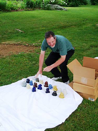 Matt Grayson (Jackson Heights, NY) sets out a blanket full of colorful porcelain.