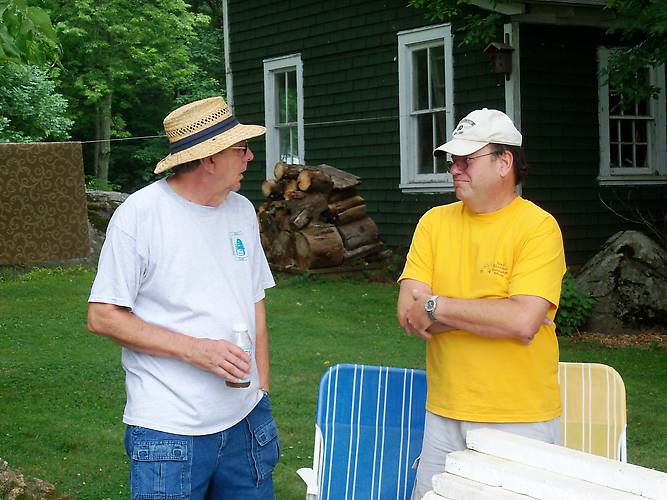 Charlie Irons and Steve Bobb exchange hunting stories.