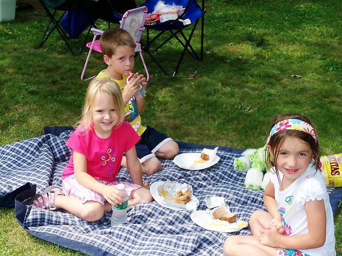 Colin Rath (back) joins Madison and Gabrielle for a picnic.