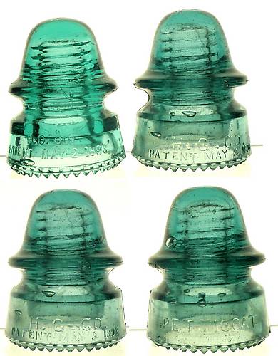 Here we have a CD 162 HGCO PETTO signal with script embossing. Having a very hard time putting my thumb on a color name for this so I have shown it next to an aqua stamp embossed(top left) for some sort of comparison. Damage is 1 halved drip,1 drip tip flaked,1 small flakelet on the WG lip edge and 1 small flakelet on base corner edge. Very nice condition piece. If you want more pix or have questions just ask please. First email to me... $168 shipped USA/CANADA.Other countries I'll assist with shipping equally. |