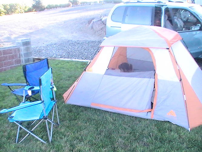 Here is our tent where we spent the night on Terry's property the night before the show. He has many acres of Rainer Cherries on his property and a huge yard with a swimming pool.