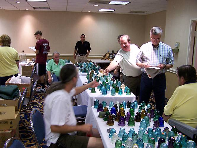 Bob Berry and Gary Fine complete a transaction with Jack Roach, Jim Fielding, Elton Gish, and Jimmy Burns watching closely.