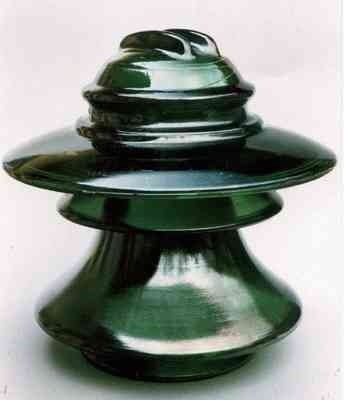 This week you see a French insulator, that has been found in Italy, on a 60 kV line dismantled in the 70s at Monfalcone, near Trieste, northeastern Italy. It is the only glass four parts insulator I've ever seen, and also the largest. It is about 15 inches high. [IFONA CD 371.6] |