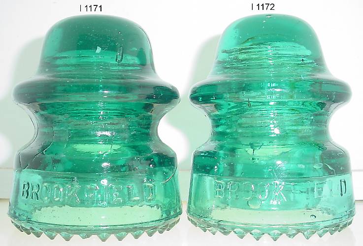 Funny stuff. . .with the talk on ICON about Brookfield insulators with drips points. . . .hit the local flea market this AM. . .and picked up two really nice Brookfield CD 164's with sharp drips! One is a really cool dark aqua. . .and its mate is a shade lighter. . .both have the same shop number on the dome. . .a weird 6. Yesterday scored on a barely used book case at a thrift store for 13 bucks! YIPPEE! Can bring home more insulators now! drip dog ^..^ |