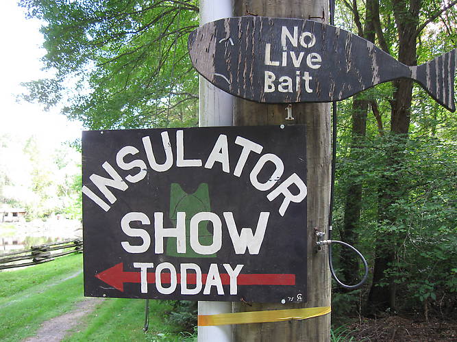 Yankee Pole Cat Insulator Club's picnic at Larry's "Golden Pond" in Connecticut. This sign was done by Mr "No 9" Charlie Angevine in 1975. I took the sign from Charlie in '85 and gave it to the Yankee Pole Cat Insulator Club to be used at Larry's "Golden Pond" annual picnic and it's still looking well.... |