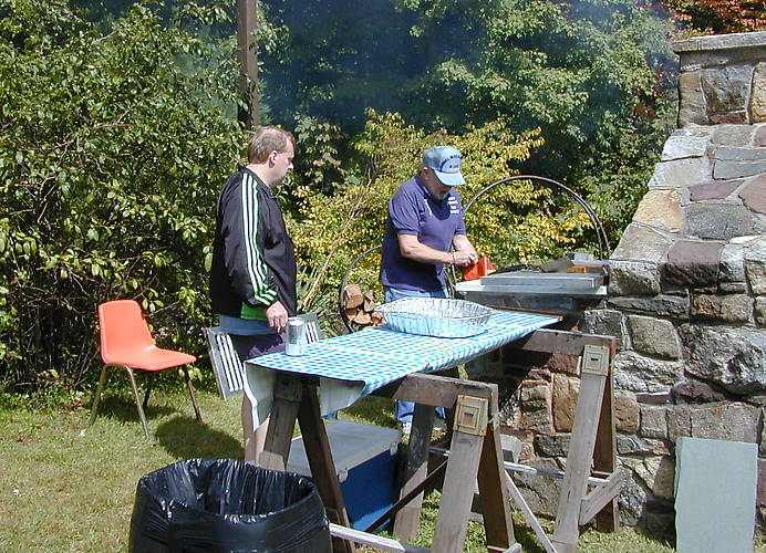 John Rajpolt oversees Master Chef and host Larry Emmons cook burgers and hot dogs.