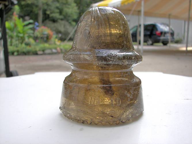 This really funky colored Hemingray signal showed up and sold right away. Full of fizz and brown swirls.