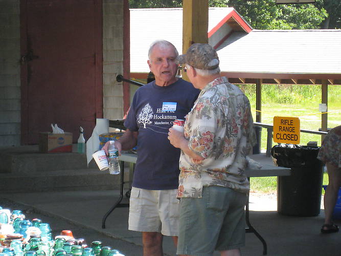 Doug MacGillvary (one of the founding fathers of the New England hobby) and LA Jones. The sign in the background was a blessing for the insulators - no shooting at the gun range today!