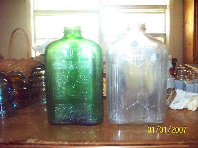 Two Owens-I water bottles 7 up green lip chip can be covered with cap waterfall design clear with design NOT MUNCIE 20 shipped