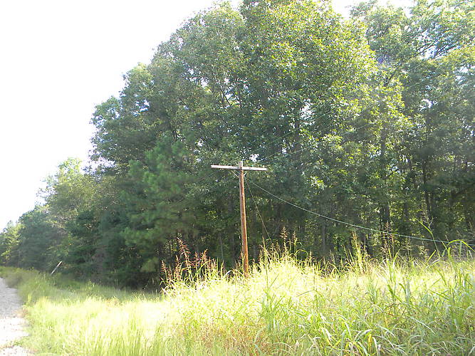The pole behide this one is held up by 3 Copper wires. You can see the pole leaning ready to fall over.