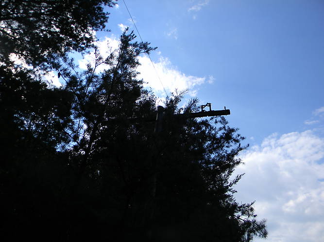 Sorry, this picture is dark because the sun was behide a cloud. It has busted plastic H.K. Porters on it. The glass that wason the pole is broken.