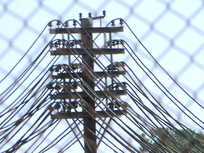 Sorry about the blurry picture it was taken when the car was moving. Wow! A heavy duty pole with heavy duty insulators. I'm no porcelain expert so guess at what there are.