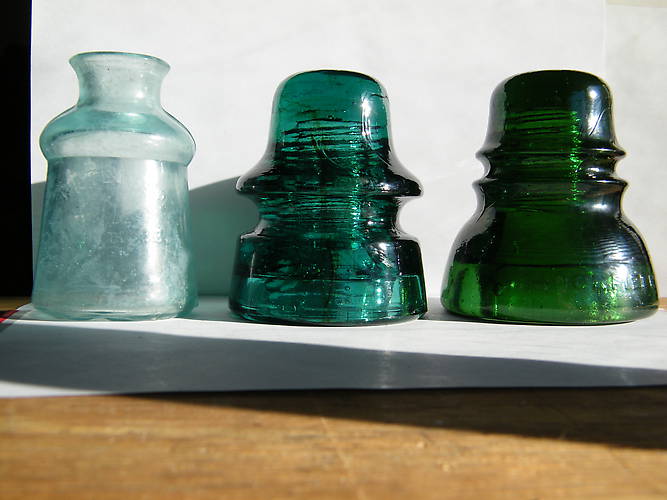 If anyone is interested in either of these insulators they are both being auctioned off presently at the E-place. Do a anvance search of RogerP518. Then click on sellers other items and you should be able to find these two and maybe more you would like in your collection. Last Saturday I drove to a Flea Market about one our away. A hugh flea market at that. Anyhow I wasn't the only visitor to that flea market out looking for insulators. I found that out after asking a vender whether she had anymore. You know the answer to that question. Right? Anyhow, I had purchased the Yellow Green CD 152 and thought that would be the only insulator I was going to leave with this day. As a matter of fact I started driving out through the parking lot and changed my mind about leaving. Parking the car closer to the entre point I took off in pursuit of some more gems. Low and behold I found the narrow dome with all the amber stringers. It is truely awesome. Also found the Bixby bottle for a guy whose last name is Bixby. He had purchased an ink bottle from me in the past on eBay due to that fact. Which is where these two insulators will be headed if I'm unable to find a new owner at Icon. Watch the for sale file next week if interested. Thanks. |