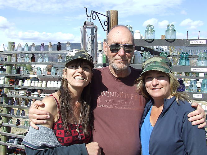 Meet Kim and Renee, aka the "Insulator Gurls". Crazy people and so much fun. From the very moment I met them, I have had a warm place in my heart for these two zany charactors. How many people get an email saying, "my friend and I want you to teach us how to climb poles, so we can collect insulators" This was many years ago, and if fun, and laughs, and wonderfully happy memories could be stored in cartons, we would need a warehouse to keep them. Did we ever find anything worthwhile on our hunting trips, just a wonderful friendship. Our two crowning achievments were, 1) both gals gaining the confidence to dig their spurs into the pole and lean back against the climbing / safety belt, and learn to trust their equipment. 2) was the day both made their solo climb to the top of a pole unassisted. I think they each still have the first insulator they picked that day. You should have seen their smiles. Here we are at the Insulator Ranch Show, Saturday, Sept 11, 2010. Kim and Renee have been solid supporters of the show since we moved to Merritt, and while I may see them only once or twice during a year, that's OK, They are worth waiting for. |