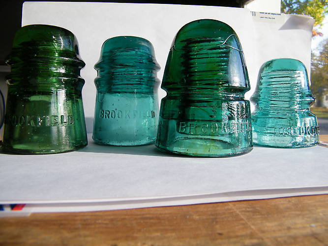 There are two CD 121 tolls on the left. Think one is either a dark yellow green or yellow olive green. The 145 sceb is a dark blue aqua with some very nice amber swirling. The 160 had some red paint on it. Maybe it was a phone line insulator on the side of a house or barn. [id=293300644] |