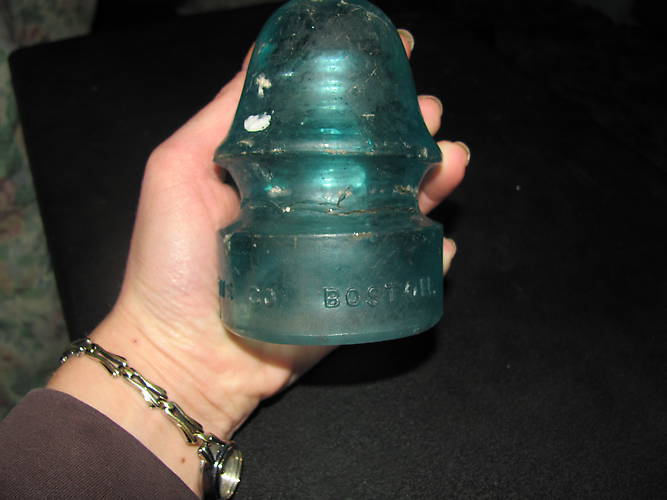 Pettingell Andrews Boston Insulator, blue, frosted, screw on, bubbles. I have 3 of these. Would like $400 or B/O