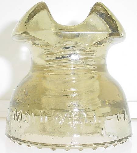 On vacation. . .to much time on my paws. . .so. . .hit a couple of local antique shops today. . .rarely find much nowadays. . .but once in a blue moon. . .had to choke over 4 bucks for this pretty o'l straw cable. . .maybe a tiny peck on one ear. . .and very odd surface on one side. . .kinda like the glass had some impurities that did not mix well. . .but wait. . .this insulator was MAYDWELL!!! dogwithtomuchtimeonhispaws ^..^ |