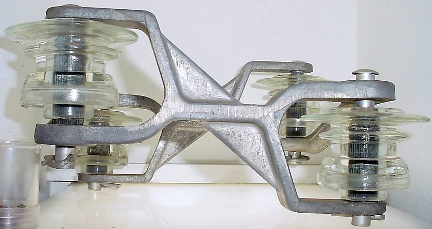 The fog of. . .old age has lifted ever so slightly. . tonight. . so am going to try to post a picture with the CORRECT description. . . Many years ago. . .at least 25. . .I was taking a road trip. . .while in Utah. . .I noticed a carrier line that was in complete disrepair from the road. . .feeling lucky . . .I stopped and followed the line for a while. . .well. . .in a pile of brush. . found this little guy. . .yea . . just a Case Span Bracket. . .but not the type you would find attached to a cross arm. . this is the type that is (was) used mid-span. . between the poles! Remembering these as a kid. . just floating in the air. . .was SO cool to actually find one! Well . . .skip forward some years. . .and this little guy has finally found the light of day again. . after being in a box in my attic since before my son was born in 1979. . . Sometimes. . .the best finds. . .are at home! transposition dog ^..^ |