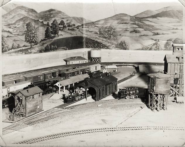 My Grandfather, Edward O. Gay, was an avid railroadian. Engineer on the Narrow Gauge Rail Road "Bridgeton and Harrison" and model train enthusiast back in the early 50's and 60's. This picture is of his model railroads in the cellar of his house in Worcester, Ma. As a kid, around 10 years old, I would spend all day watching the trains go round and round. The murel back ground is still in that house today. I remember very well all the trains he had and the table where the tracks were layed. Unfortunatly all the model trains are gone now, but a beautiful memory just the same. I recently scanned many pictures into my computer and would like to share them with you. So enjoy ! Dan Gay |